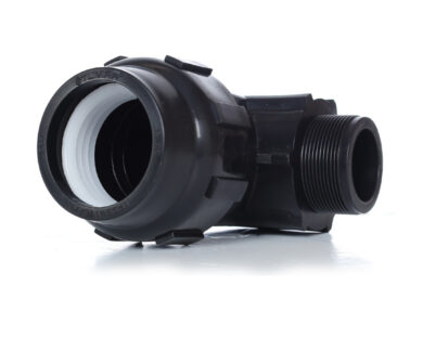 A male-threaded 90° elbow designed to redirect pipes at a 90-degree angle, ideal for plum...